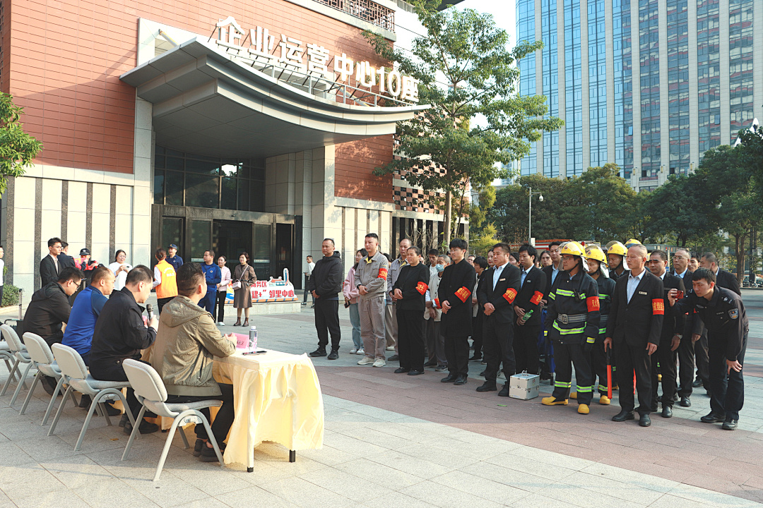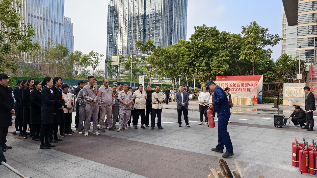 为切实提升【企业运营中心】全体人员的消防安全意识与应急处置能力,筑牢楼宇安全防线,12月3日下午,【企业运营中心】在10座大楼前广场组织开展了一场实战化消防应急演练。陈埭消防救援队、江浦社区、滨江公司以及园区部分企业职工代表参与演练。