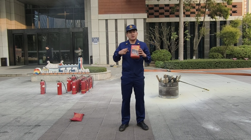 在器材讲解与实操环节,消防员细致讲解了灭火器、消防栓等常见消防器材的结构原理、使用要领及注意事项。随后,参演人员轮流上场进行灭火器实操,“一提、二拔、三握、四压”的动作逐渐熟练,真正实现了从“知道”到“会用”的跨越。