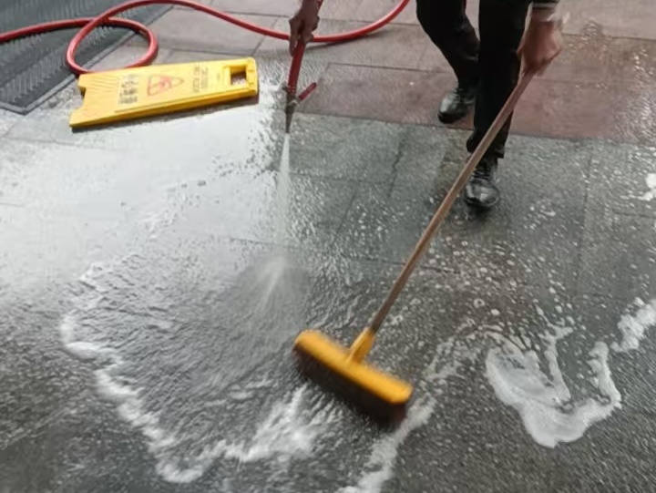 ✅ 广场地板深度清洗: 高压水枪配合专业刷地机,还原地面本色,让每一步行走都干爽整洁。
